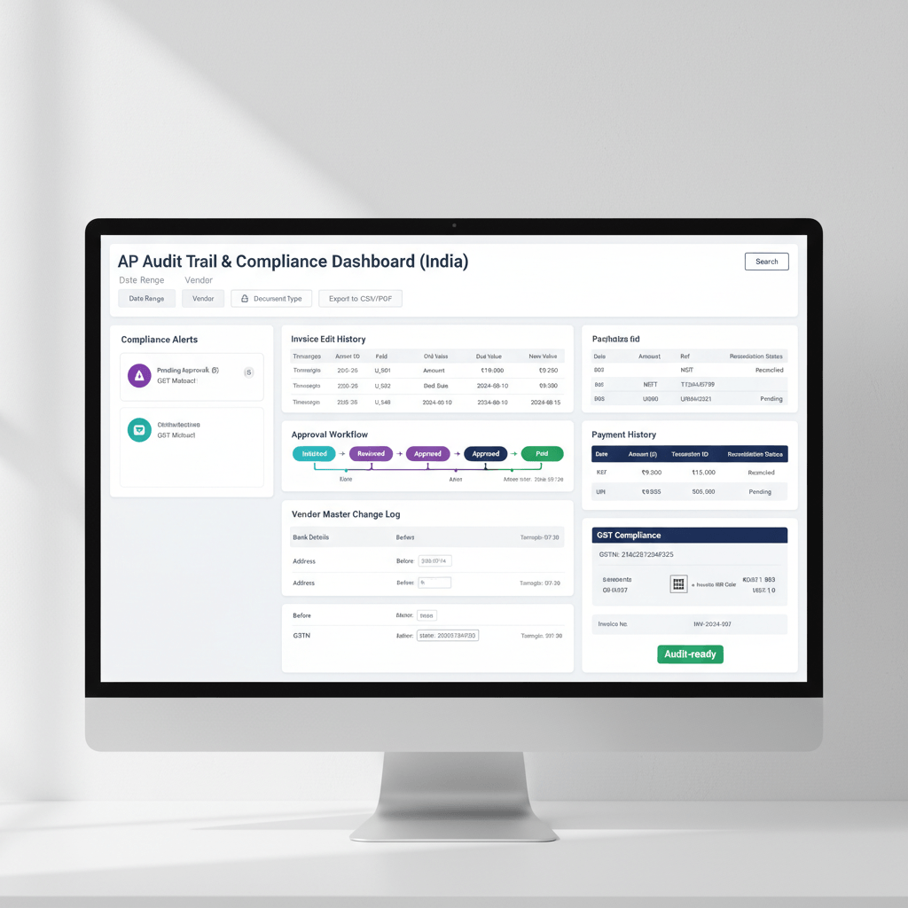- Provide real time dashboards for aging, MSME dues, and ITC realization.