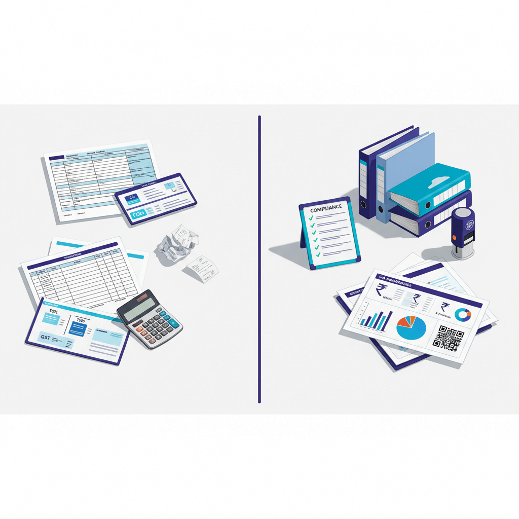 This checklist helps you switch from scattered tools to a single managed system with confidence. References, ICAI, GST, Income Tax, MCA.