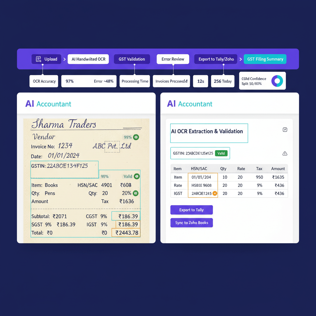 Once you cross the threshold, embed IRN generation into billing, verify HSN and POS upstream, and lock invoice sequences. AI Accountant configures e invoice checks at source, so GSTR 1 validation errors reduce, and recipient 2B reflects your invoices on time.