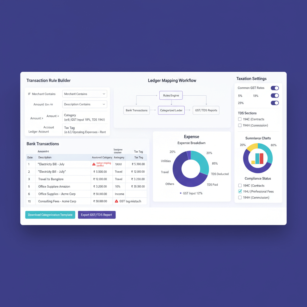 - AI Accountant for automated bookkeeping and reporting tailored to Indian banks and GST